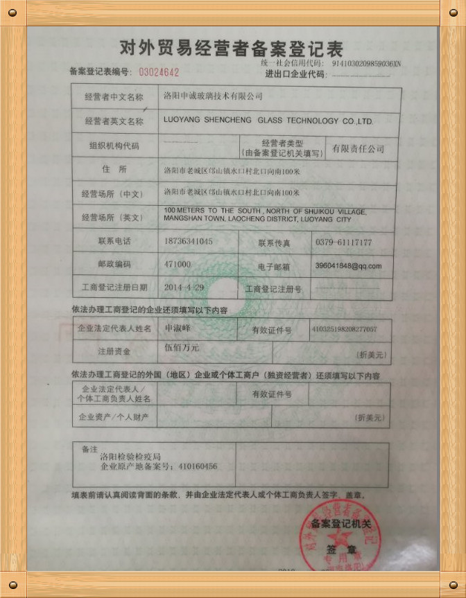 您好,歡迎訪問洛陽申誠玻璃技術有限公司網站。如有疑問,歡迎聯系18737971827 18939008535進行咨詢!